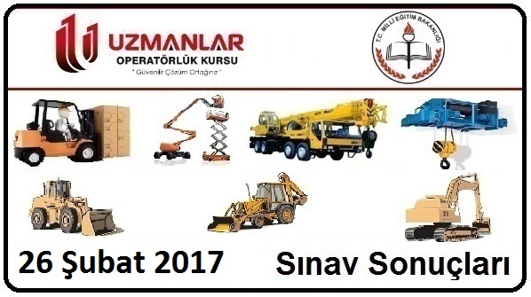 26 Şubat 2017 İş Makinası Operatörlük Belgesi Operatörlük Sınav Sonuçları